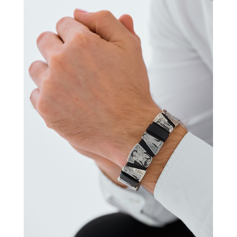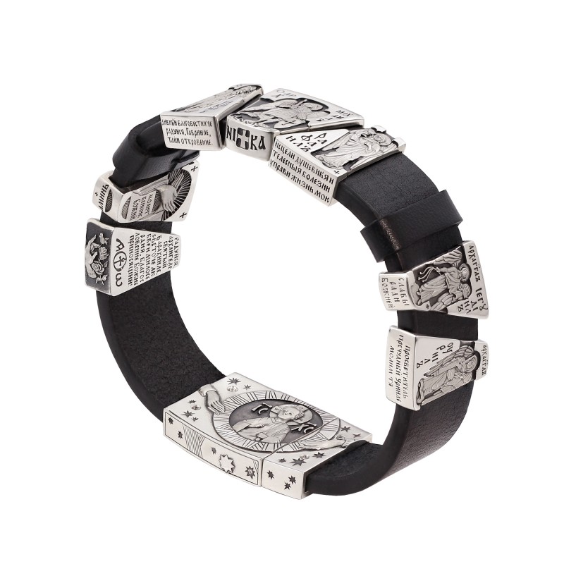 БРАСЛЕТ "АРХАНГЕЛЫ" ИЗ КОЖИ И СЕРЕБРА