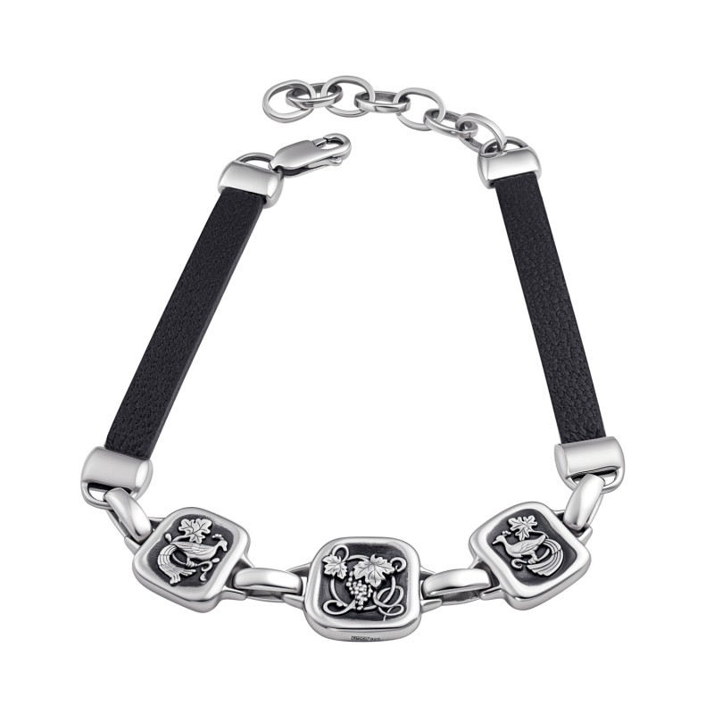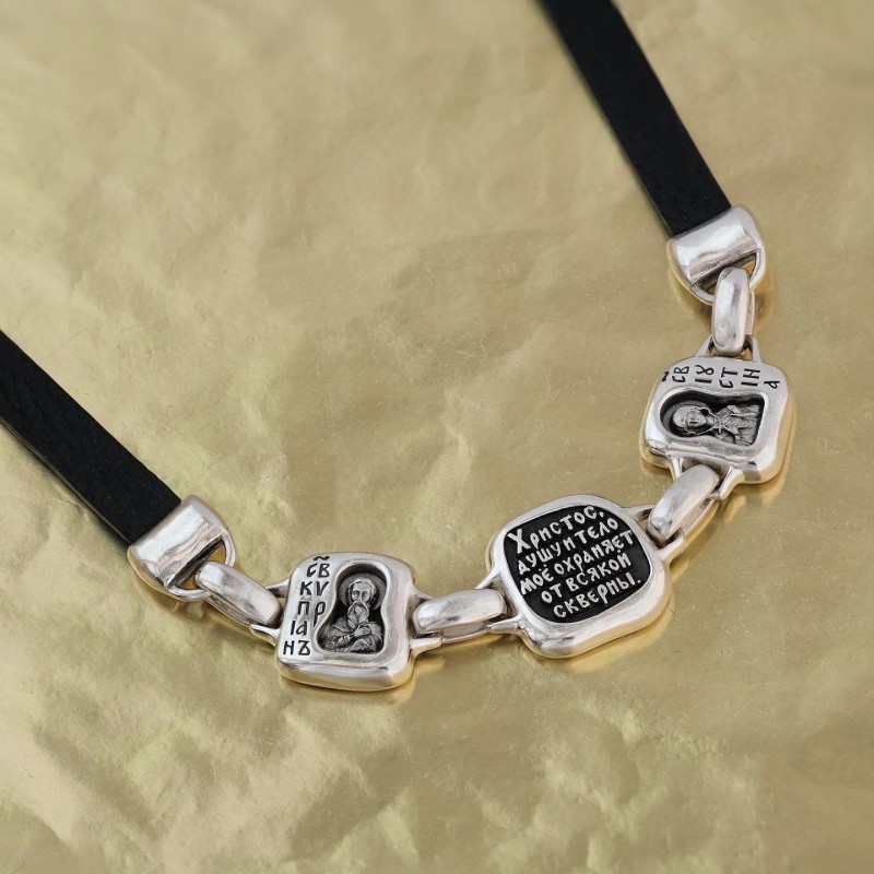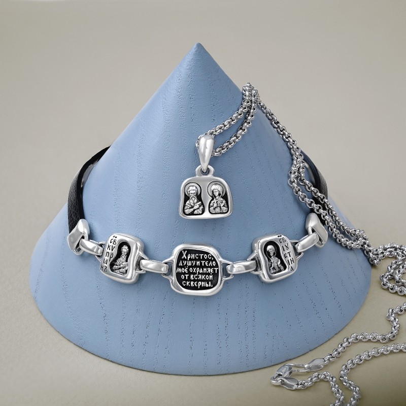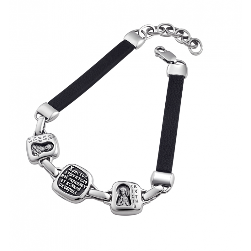 БРАСЛЕТ ИЗ СЕРЕБРА И КОЖИ "СВЯТЫЕ КИПРИАН И ИУСТИНА"