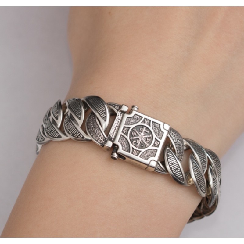Теги: Браслет 105.317, браслет серебряный православный, браслет христианский мужской, крупный серебряный браслет, браслет мужской с молитвойй, подарок мужчине воину, подарок для мужчины дорогой