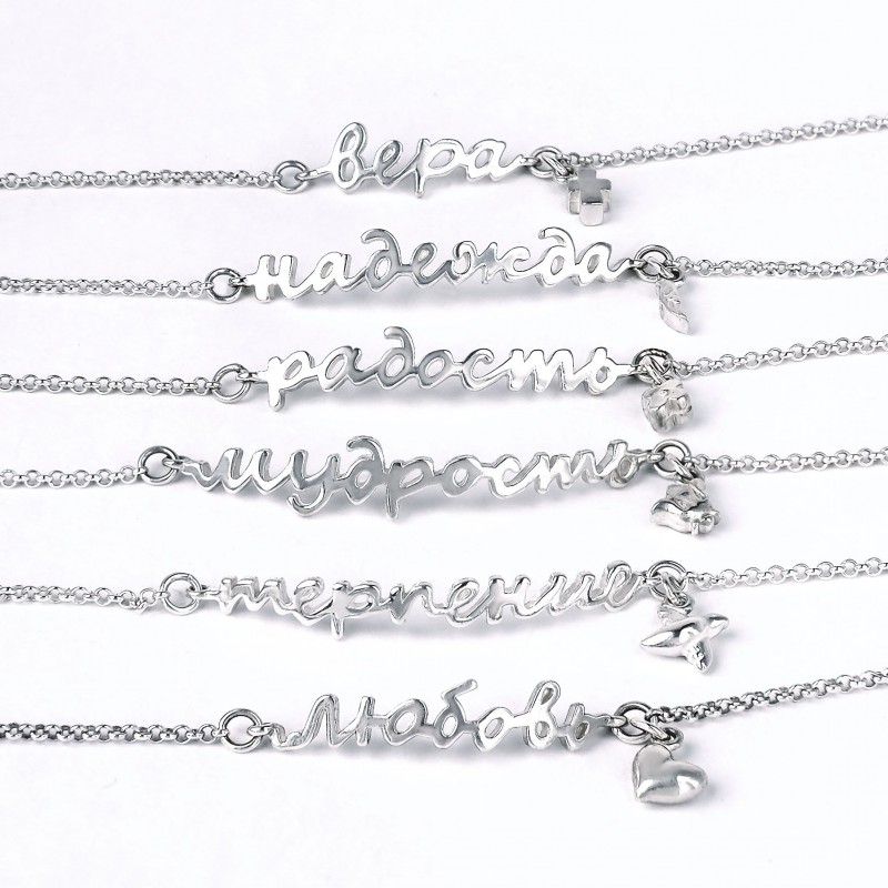 Этот простой в дизайнерском решении браслет входит в серию браслетов "Христианские добродетели", он создан напоминать об одной из главных добродетелей - о надежде. Украшает браслет маленькая подвеска в виде крыла.