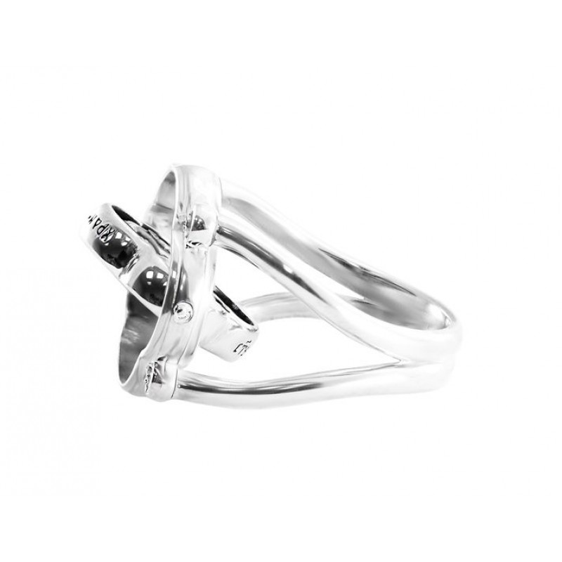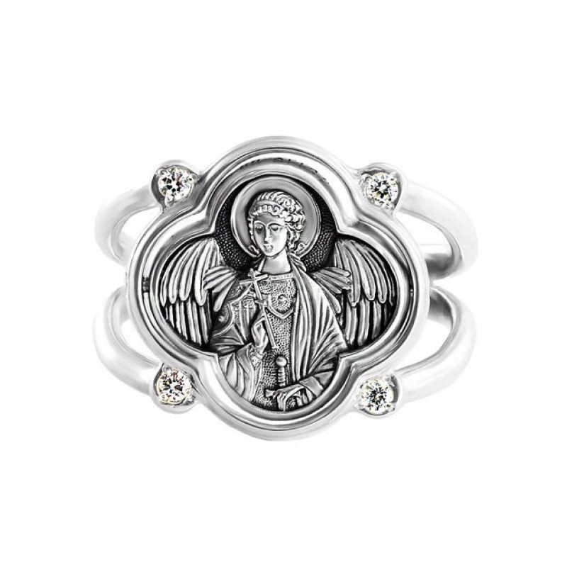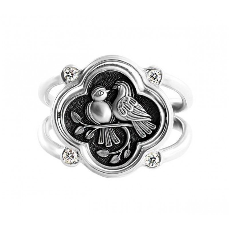 Очень необычное и интересное православное кольцо из серебра 925 пробы с чернением, украшенное четырьмя сверкающими фианитами.
