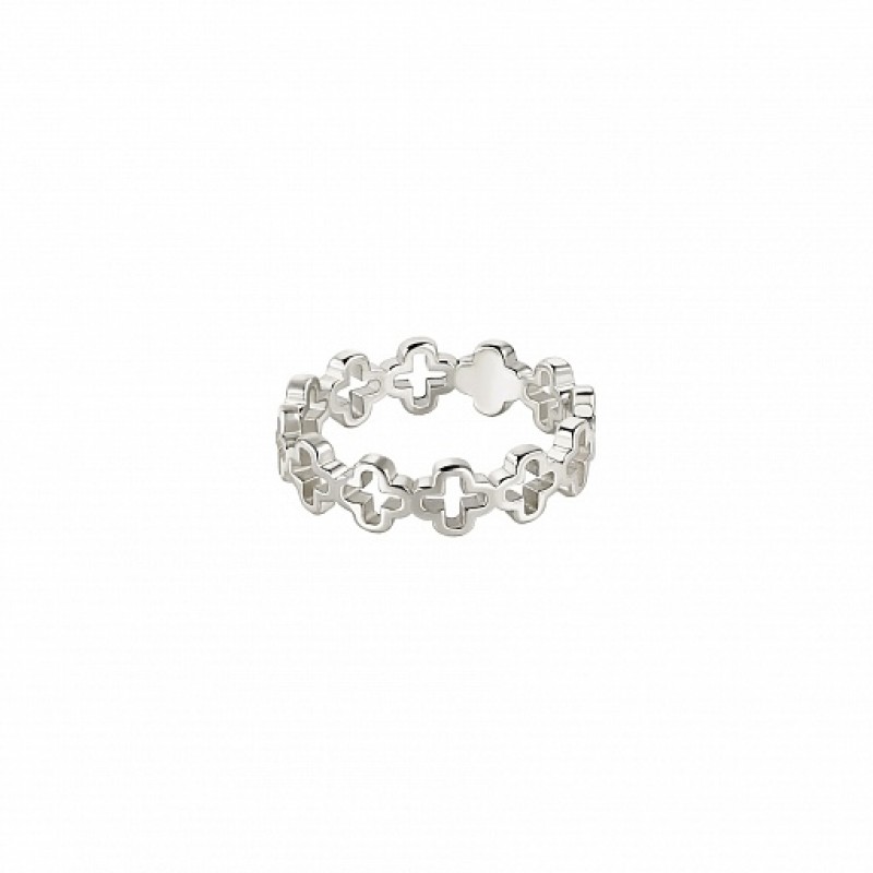 Это простое, но одновременно очень нарядное кольцо. Оно составлено из маленьких ажурных крестиков тонкой работы, а в центре выделяется один полнотелый крестик, который создаёт яркий акцент.