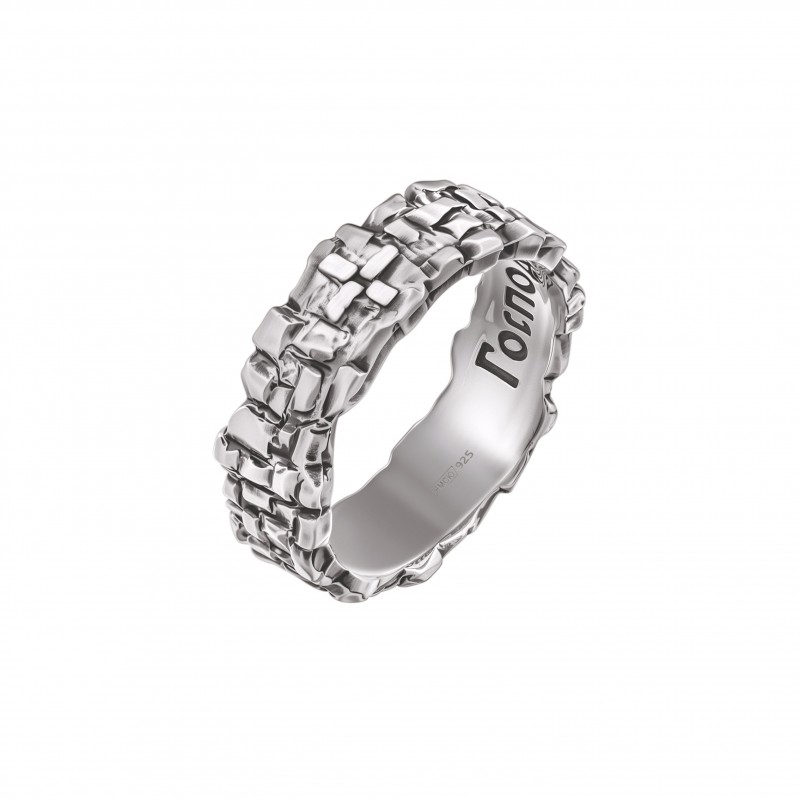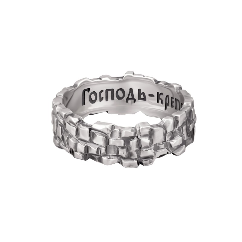 Серебряное кольцо со строками из 27 Псалма "Господь – крепость моя и щит мой" (Пс. 27:7) - это не просто изящное украшение, но и напоминание его владельцу о Божией любви, помощи и защите. Недаром кольцо с лицевой стороны стилизовано под крепкую каменную стену, символизируя, что, как крепкая стена, Господь бережёт и хранит нас от врагов видимых и невидимых.