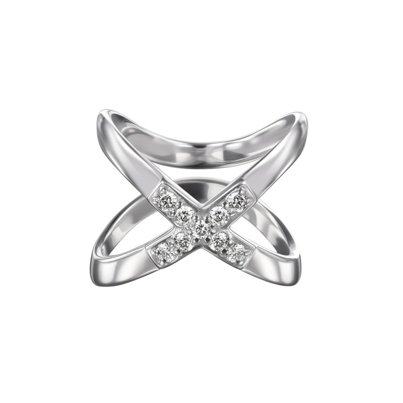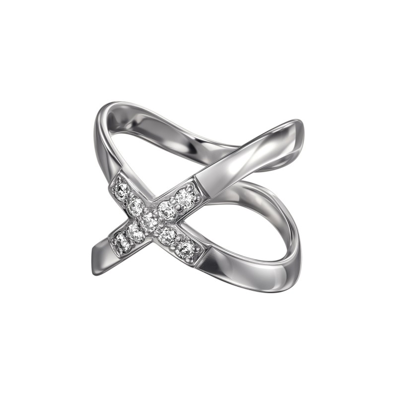 СЕРЕБРЯНОЕ КОЛЬЦО "ПЕРЕКРЕСТИЕ" С ФИАНИТАМИ выполнено из серебра 925 пробы с применением техники родирования, которая дарит особый блеск изделию и сохраняет серебро от естественного потускнения.