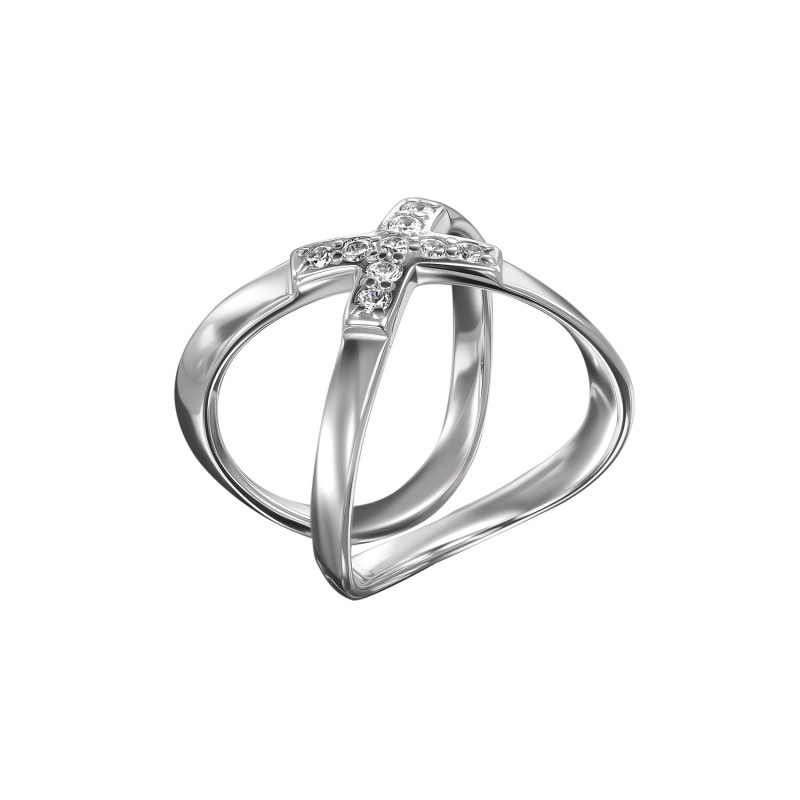 СЕРЕБРЯНОЕ КОЛЬЦО "ПЕРЕКРЕСТИЕ" С ФИАНИТАМИ