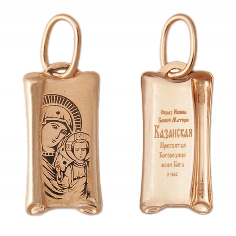 Золотая подвеска свиток с образом Казанской Божией Матери, лазерная огранка.